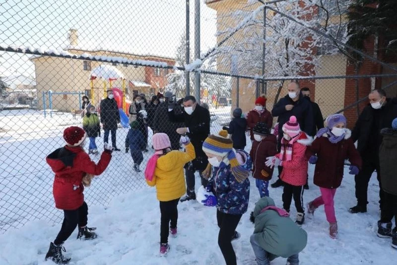 Vali Atay çocuklarla kartopu oynadı, kardan adam yaptı
