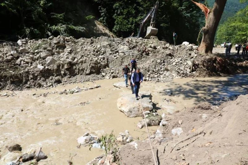DÜZCE – Düzce Valisi Cevdet Atay, sel afetinde büyük hasar gören Uğur köyünde yapılan çalışmaları inceledi.