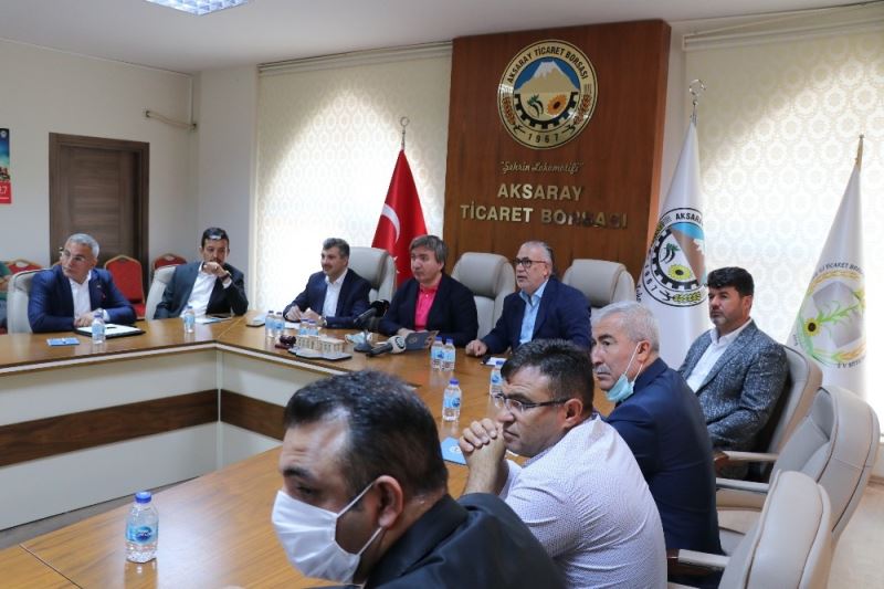 Toplantıya ev sahipliği yapan Ticaret Borsası Başkanı Hamit Özkök ise Aksaray’ın acilen suya ihtiyacı olduğuna değinerek, “İnşallah birlik beraberlik içerisinde valiliğimizle, belediyemizle, siyasilerimizle, STK’larımızla, il müdürlerimizle ama esas olan vatandaşımızla hemhal olup çözüm odaklı çalışmanın içerisinde olacağız. Tabi Sayın Valim söyledi, insanlar baş başa verirse taş yerinden kalkar, açıkçası insanlar sırt sırta verirse ne taş yerinden kalkar ne işler yerine gelir. Ama biz şunu görüyoruz ki, Sayın Valimizle baş başa, omuz omuza verip birçok noktaya, hedefe kilitlenip altın vuruş yapacağız. Bizim bu üretimin karşılığında Sayın Valim acilen dış havzalardan suya ihtiyacımız var. Biz dış havzalardan acilen su getirmezsek samimiyetle söylüyorum. Bu yıl Rabbim yağmuru çok verdi, rekoltemiz iyiydi. Fakat 2023 hedeflerine kilitlenen Türkiye, Türkiye’nin de önemli parlayan yıldızı Aksaray’ın 2023 hedeflerine katkı sağlaması lazım. Bu katkıyı sağlamamız için de bizim üretirken enerji maliyetleriyle zor duruma düşen çiftçilerimizden biz mustarip oluyoruz. Biz bu üreticilerimizin sıkıntısını giderebilmek için cennet mekan Abdülhamit Han zamanında hazırlanan bir proje var. Karasu Kızılırmak’a, Kızılırmak Konya Ovası’na akıtılarak işte bu bölge şahlanacak” diye konuştu.