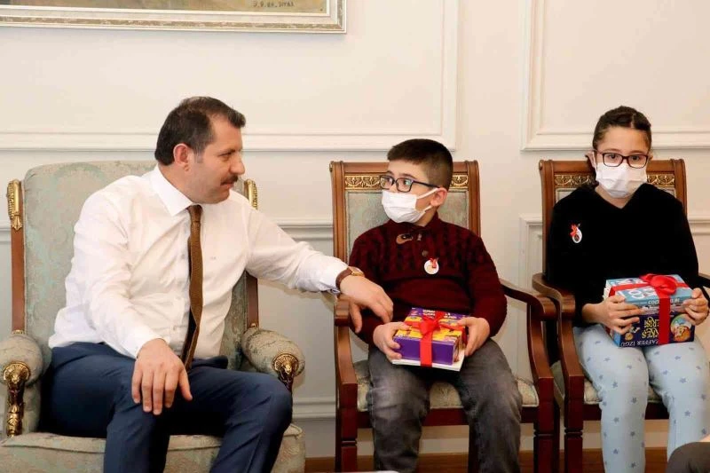 Sivas Valisi Salih Ayhan, Şems-i Sivasî İl Halk Kütüphanesi’nde en çok kitap okuyan öğrencileri aileleriyle birlikte makamında kabul etti.