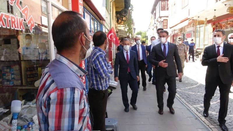Tokat’ta, İçişleri Bakanlığının genelgesi doğrultusunda "Sağlık İçin, Hepimiz İçin" sloganıyla denetim yapıldı. Behzat Bulvarından başlayarak Meydan Çarşısısında denetimlere katılan Tokat Valisi Ozan Balcı, beraberindekiler, esnafı ziyaret ederek maske, mesafe ve hijyen uyarılarında bulundu. Korona virüs salgını kapsamında tedbirleri yerinde görmek amacıyla denetimlerin devam ettiğini ifade eden Vali Balcı, "Mutluyum ki Tokat’taki hemşehrilerimiz sosyal mesafe başta olmak üzere maske ve hijyen kurallarına uyuyorlar. Bu mücadele büyük bir mücadele, bu mücadeleyi millet olarak birlikte yapmak zorundayız. Tokatlı hemşehrilerimiz köylüsüyle kentlisiyle, kadınıyla, erkeğiyle, yaşlısıyla, genciyle büyük bir sorumluluk anlayışı içerisinde bu işi önemsiyor. Bu duyarlılıklarından dolayı Tokatlı hemşehrilerimize müteşekkiriz. Daha önce ifade ettiğimiz gibi toplumda yalnız yaşamıyoruz; hastamız, engellimiz, kronik hastalarımız var. Onların sağlığını korumak gereken kurallara uymak zorundayız. Sağlık ordumuz doktor, ebe, hemşiresiyle mücadele ediyor. Kendilerini yürekten kutluyorum. Bizim de toplum olarak onlara destek vermemiz lazım” dedi.