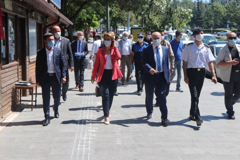 İçişleri Bakanlığı tarafından yayımlanan korona virüs ile mücadele kapsamında yayımlanan genelge sonrasında Nevşehir Valisi İnci Sezer Becel, Nevşehir Belediye Başkanı Rasim Arı, Emniyet Müdürü Mehmet Artunay, Jandarma Komutanı Jandarma Kıdemli Albay Hüsamettin Erol, daire müdürleri ve komisyon üyeleri İl merkezinde denetleme yaptı. Vali İnci Sezer Becel esnafları korona virüs ile mücadele kapsamında alınacak olan tedbirlerin başında maske, mesafe ve hijyen kurallarını hatırlatırken vatandaşların ise bu kurallara uymasından dolayı teşekkür etti.