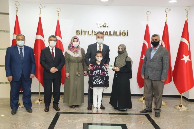 Bitlis Valisi Oktay Çağatay, Türkiye Hafızlık ve Kur’an-ı Kerim’i Güzel Okuma Yarışmasında ikinci olan Hatice Çelebi’ye hediye takdim etti.