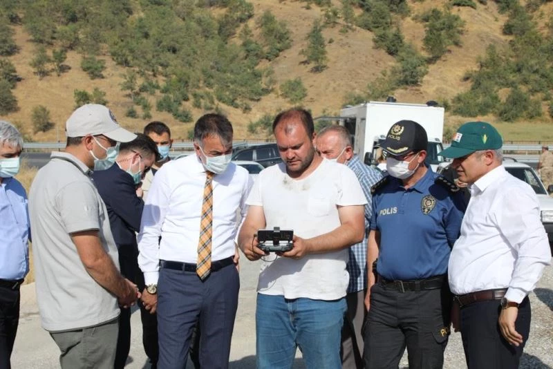 Bitlis Valisi Oktay Çağatay, Bitlis-Siirt karayolu Buzlupınar mevkiinde başlayan örtü yangının olduğu bölgede incelemelerde bulundu. Vali Çağatay, yangın söndürme çalışmalarını yürüten yetkililerden bilgi alarak Orman İşletme Müdürlüğüne ait drone ile yangın bölgesini havadan inceledi.
