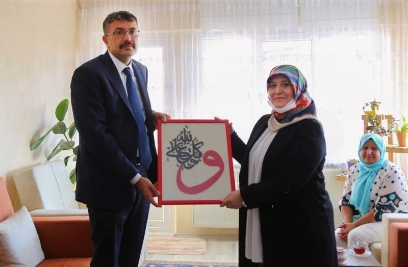 Ziyarette, Kütahya Multipl Skleroz (MS) Epilepsi ile Yaşam Derneği Başkanı Münevver Altın, Vali Çelik’e dernek üyelerinin yaptığı ve üzerinde Arapça vav harfinin olduğu keçe tablo hediye etti.