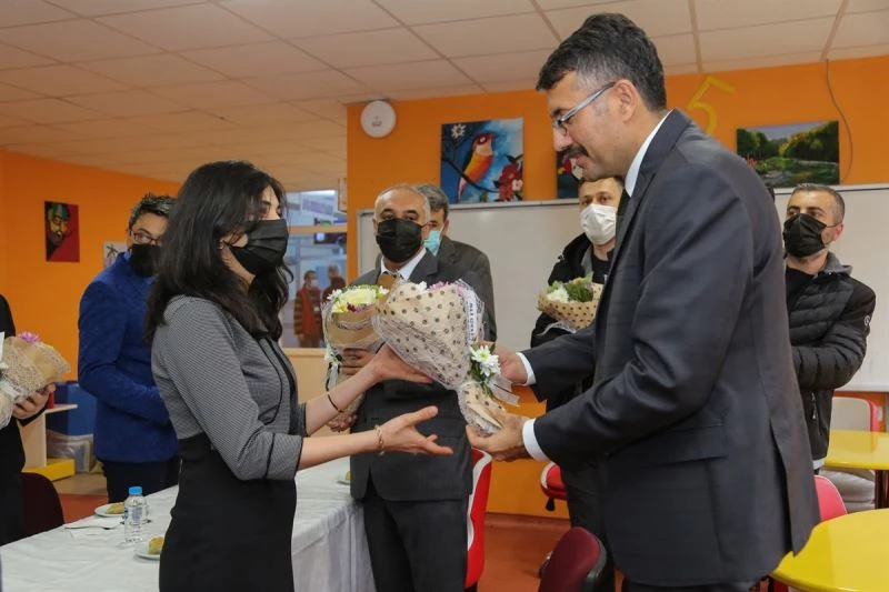 Vali Ali Çelik, öğretmenleri tebrik ederek günün anısına çiçek ve hediye takdim etti.
