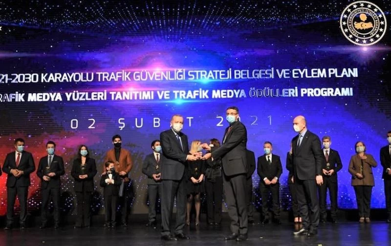 Trafik Medya Ödülleri Değerlendirme Kurulu Üyesi Vali Ali Çelik’in ödülünü, Cumhurbaşkanı Recep Tayyip Erdoğan verdi.