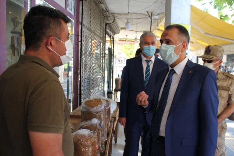 Adıyaman İl Jandarma Komutanı Albay Ercan Atasoy, Emniyet Müdürü İbrahim Ergüder ile birlikte tütüncüler pazarına giden Vali Mahmut Çuhadar, tütün üreticileriyle görüştü.