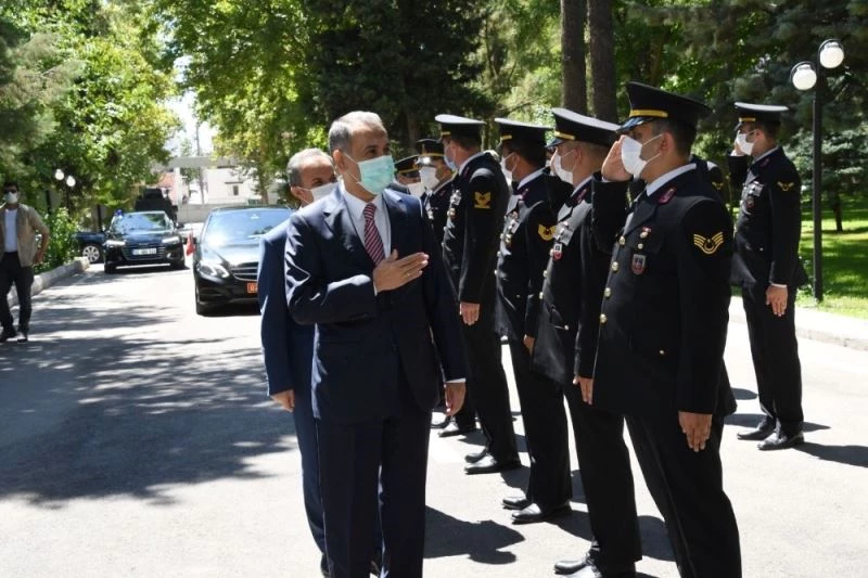 Vali Mahmut Çuhadar ve beraberindeki heyet, bayramlaşma programı kapsamında ilk olarak İl Jandarma Komutanlığına geçerek, jandarma personeli ve vatani görevini yapan askerlerle bayramlaştı.