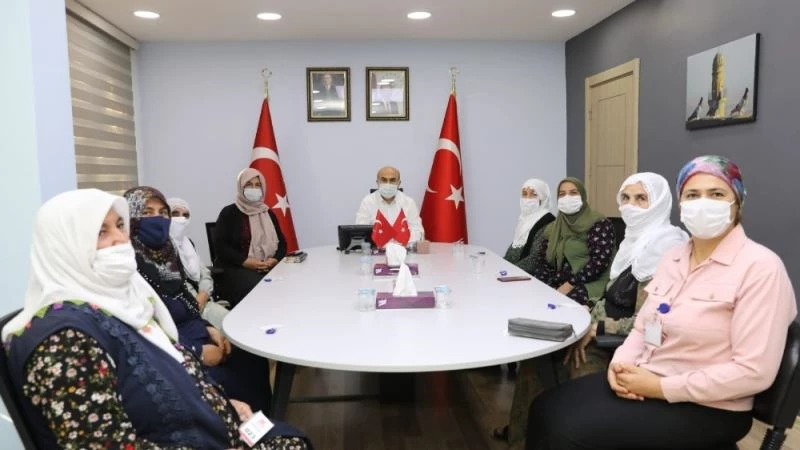 Mardin Valisi ve Büyükşehir Belediye Başkan Vekili Mahmut Demirtaş, sorun ve taleplerini dile getirmek üzere belediyeye gelen kadınlar ile bir araya geldi.