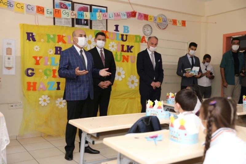Vali Mahmut Demirtaş, sınıfları dolaşarak, öğrencilere 2020-2021 eğitim-öğretim yılı için iyi dilek ve temennilerini ileterek korona virüs tedbirlerine uymaları konusunda uyarıda bulundu.