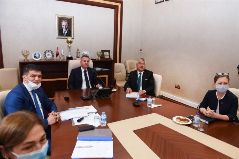 Daire başkanları ve belediye yetkililerinin de hazır bulunduğu toplantıda Büyükşehir Belediye Başkanı Zeydan Karalar, Vali Süleyman Elban’a belediye hizmetleri ile yürütülen projeler ve planlamalar hakkında bilgiler verdi.