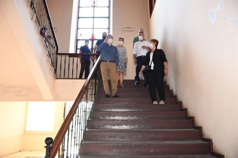 Adana Valisi Süleyman Elban, müze ve restorasyon çalışması yapılan eski kız lisesinde incelemelerde bulundu.