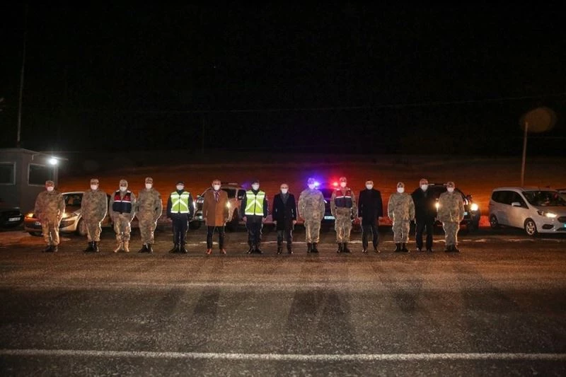 Bayburt Valisi Cüneyt Epcim, yeni yıl akşamı kontrol noktalarında görevli emniyet ve jandarma personelini ziyaret etti.