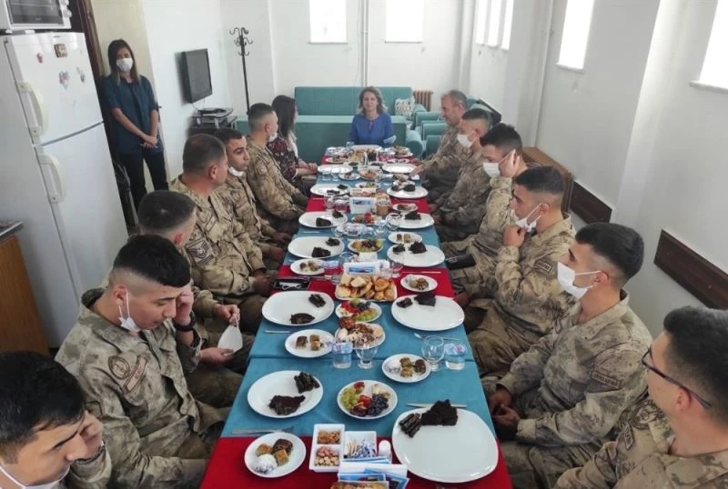 Batman Valisi Hulusi Şahin’in eşi Batman Gönül Elçileri temsilcisi Ebru Şahin, Sason Yücebağ jandarma karakolunda görevli askerlere kendi elleri ile yaptığı yemekleri ikram etti.