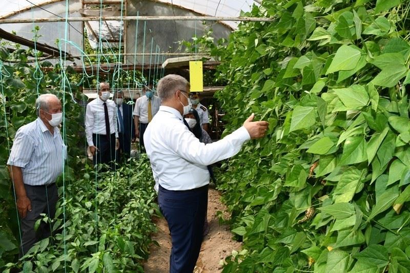 Vali Fuat Gürel, Öğlebeli Mahallesinde örtüaltı yetiştiriciliği yapan Hasan Hüseyin Özdemir’e ait seraları gezerek İl Tarım ve Orman Müdürlüğü yetkililerinden ve sera sahibinden yetiştirilen ürünler, biyolojik mücadele ve üretim teknikleri ile ilgili bilgiler aldı.