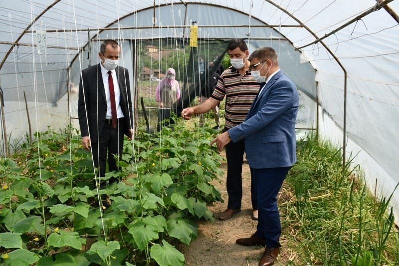 Çiftçiler, İsmet Taşyıkan, Saim Ayvalık, Harun Reşit Can, Bekir Çankaya ile Hasan Gömeç’i ziyaret ederek, yüzde 50 devlet desteğiyle yaptıkları seraları gezen Vali Gürel, Tarım ve Orman Müdürlüğü yetkililerinden ve üreticilerden yetiştirilen ürünler, biyolojik mücadele ve üretim teknikleri ile ilgili bilgi aldı.