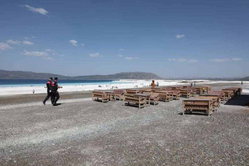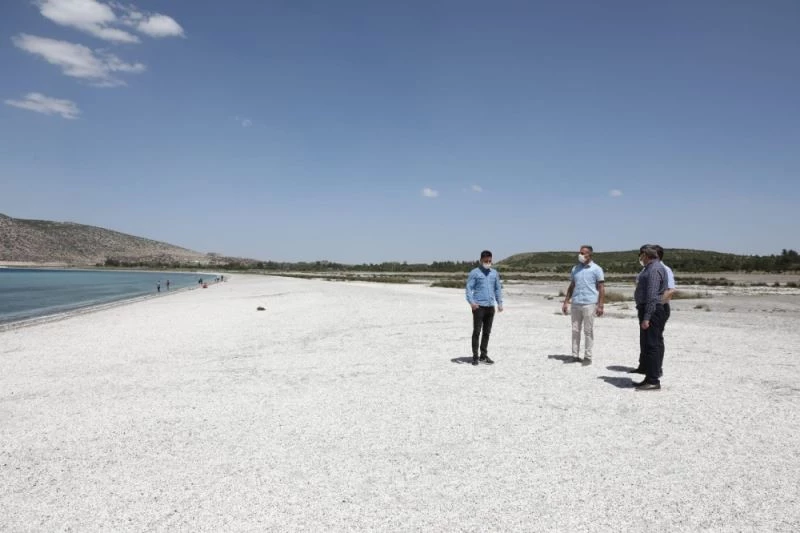 Burdur Valisi Hasan Şıldak, Salda Gölü çevresinde yürütülen sezona hazırlık çalışmalarını ve ziyarete açılmasıyla birlikte kontrollü sosyal hayat kapsamında alınan tedbirleri inceledi.