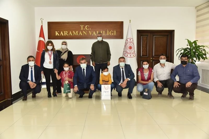 Karaman Valisi Mehmet Alpaslan Işık, valilik makamında gerçekleşen ödül töreninde İstanbul ve Gaziantep illerinde katıldıkları turnuvalarda elde ettikleri başarılardan dolayı sporcuları kutladı. Vali Işık, “Katıldığınız turnuvalarda elde ettiğiniz sonuçlar ne kadar başarılı olduğunuzu gösteriyor. Sizlerle gurur duyuyoruz. Bu başarılar sizi olduğu kadar bizi de oldukça mutlu etti. Her daim sizlerin yanınızdayız. Bu başarılarınızın bundan sonra da artarak devam etmesini diliyor, hepinizi yürekten tebrik ediyorum” dedi.