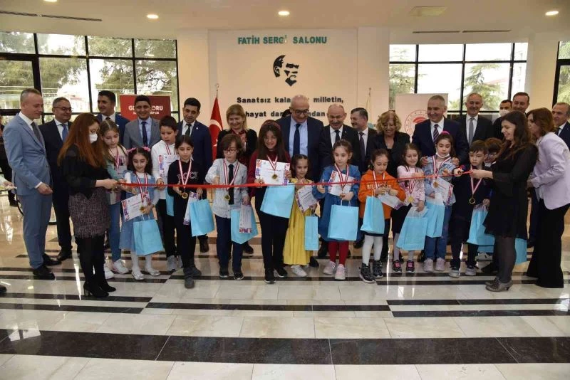 Konuşmaların ardından serginin açılış kurdelesini öğrencilerle birlikte kesen Vali Yaşar Karadeniz ile protokol üyeleri sergiyi gezdi.