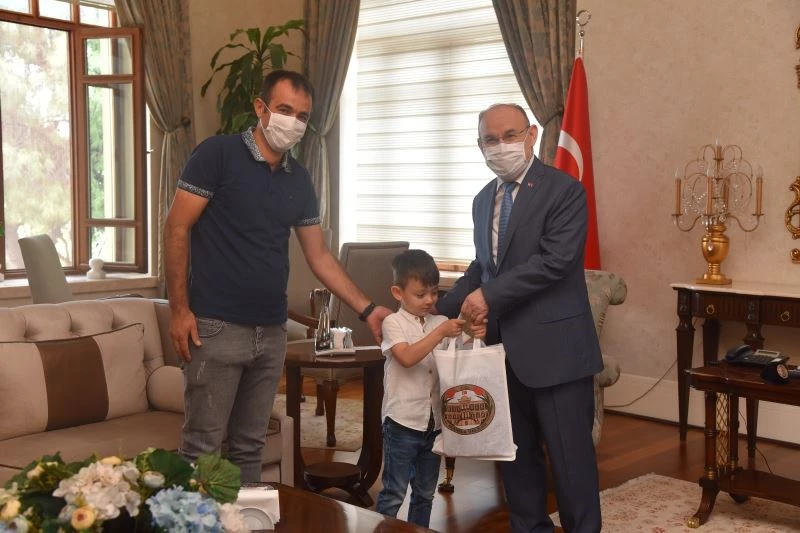 Vali Karadeniz kendisini merak eden minik çocuğu makamında ağırladı