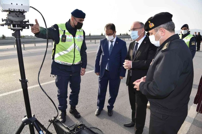 Manisa Valisi Yaşar Karadeniz, Manisa-Akhisar yolunda bulunan Jandarma Uygulama Noktasını ziyaret ederek Türkiye’de ilk defa Manisa İl Jandarma Komutanlığı’nca kullanılmaya başlanan yerli ve milli Medar Mobil Hız Tespit Sistemini yerinde inceledi.