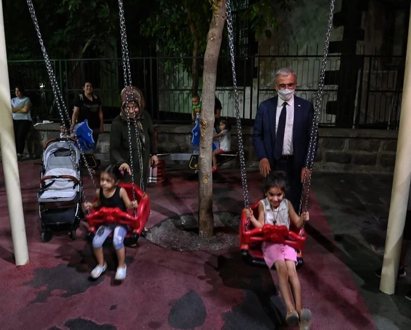 Diyarbakır Valisi Münir Karaloğlu, Büyükşehir Belediyesince yenilenen Sanat Sokağında çocuklarla bir araya geldi. Yenilenen yüzüyle huzur ve güven ortamında oynayan çocuklara eşlik eden Vali Karaloğlu, salıncak salladı ailelerle sohbet etti.