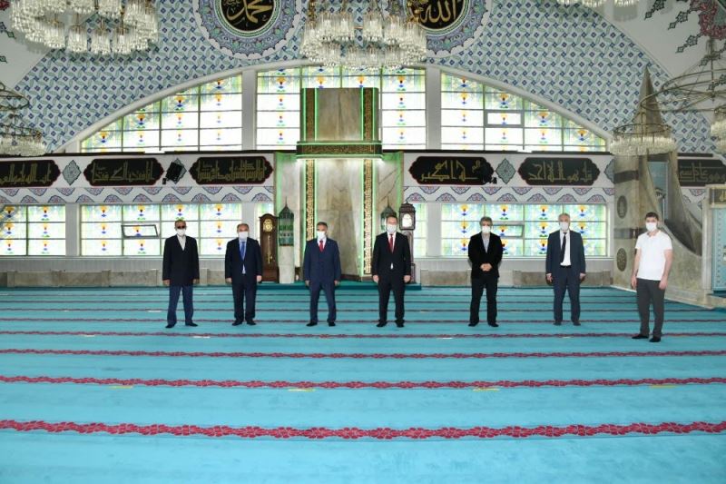 Samsun Valisi Osman Kaymak, camilerin toplu ibadete açılmasının ardından kılınan ilk cuma namazı öncesi alınan tedbirleri yerinde inceledi.