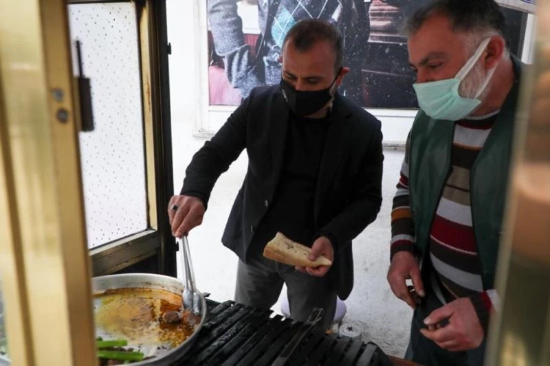 Esnaf ziyareti sırasında sokakta seyyar araçta köfte pişirerek satan esnaflardan aldığı ekmek arası köftelerden satın alan Vali Tuncay Sonel, sokaktaki vatandaşlara aldığı ekmek arası köftelerden ikram ederek, vatandaşlarla da ayak üstü sohbette bulundu. Hal ve hatırlarını sordu.