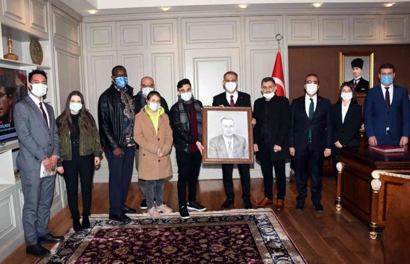 Ziyarette ayrıca, Suriyeli göçmen Halit El Subeyh, kara kalemle çizdiği Vali Mahmut Çuhadar’ın portresini takdim etti.