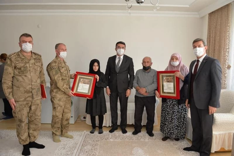 Merkez Yakutiye İlçesi Kurtuluş Mahallesi’nde ikamet eden aileyi ziyaret eden Vali Okay Memiş, şehadet belgesini şehidin annesi Erengül ve babası Süleyman Tortumlu ile eşi Eda Tortumlu’ya teslim ederek, "Sizler bize şehidimizin emanetisiniz. Bizler devletin tüm destekleri ile sizlerin yanında olacağız" dedi.