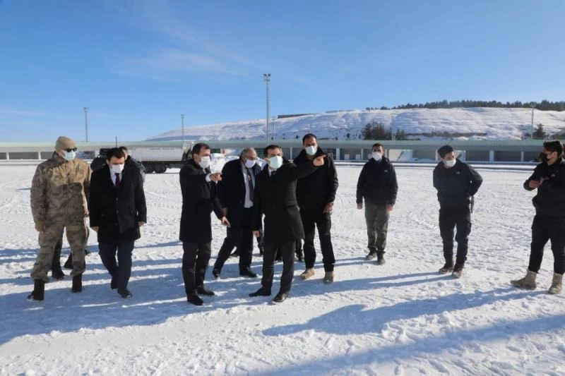 Öksüz, yapımı tamamlanma aşamasında olan “Sarıkamış Allahuekber Dağları Milli Parkı İdare ve Ziyaretçi Tanıtım Merkezi” ile “Sarıkamış Gençlik Merkezi”ne gelerek burada yürütülen çalışmalarla ilgili Kaymakam Recep Koşal ve ilgili firma yetkilisinden bilgiler aldı.
