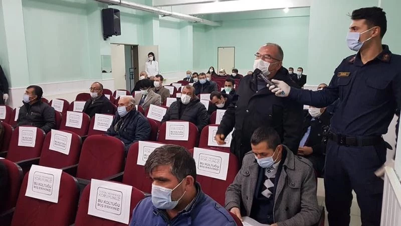 Adem Karacabay Anadolu Lisesi Salonu’nda yapılan toplantıda muhtarlarla sohbet eden Vali Polat, ilçe halkının korona virüs tedbirleri kapsamında kurallara azami şekilde uymalarını istedi.