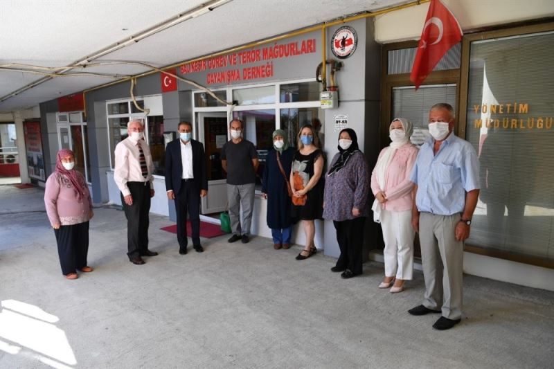 Ziyaret programı kapsamında son olarak Balıkesir Görev ve Terör Mağdurları Derneğini ziyaret ederek burada Başkan İsmet Göner ve şehit aileleri ile bir araya gelen Vali Şıldak’a Başkan Göner nazik ziyaretleri için teşekkür ederek, ziyaretin anısına hediye ve Türk bayrağı takdim etti.