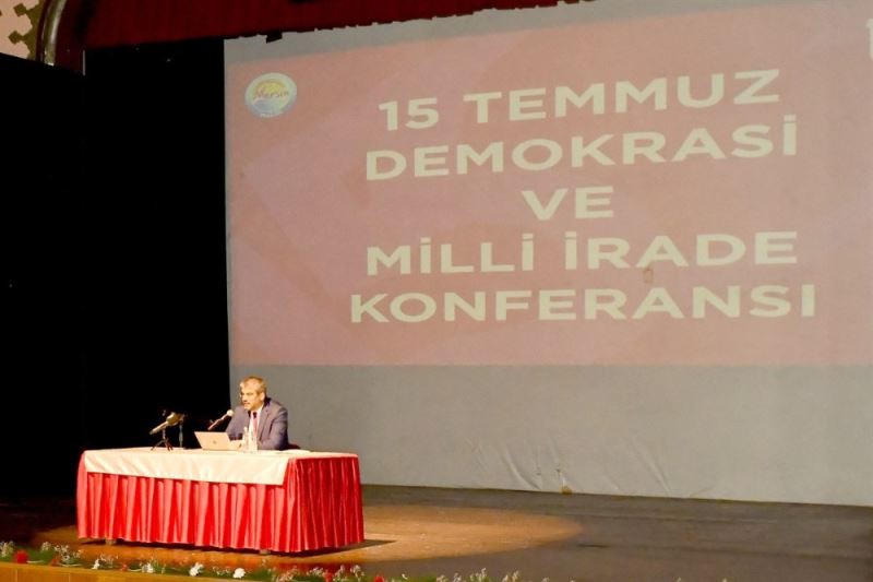 15 Temmuz Demokrasi ve Milli İrade konferansı, ‘15 Temmuz Demokrasi ve Milli Birlik Günü’ anma programları kapsamında Mersin Kültür Merkezinde gerçekleştirildi. Konferansa, Vali Su’nun yanı sıra Akdeniz Bölge ve Garnizon Komutanı Tuğamiral Ercan Kireçtepe, Mersin Üniversitesi Rektörü Prof. Dr. Ahmet Çamsarı, Tarsus Üniversitesi Rektörü Prof. Dr. Orhan Aydın, Toros Üniversitesi Rektör Vekili Prof. Dr. Haluk Korkmazyürek, vali yardımcıları, kaymakamlar, il müdürleri, sivil toplum kuruluşlarının temsilcileri ve davetliler katıldı.
