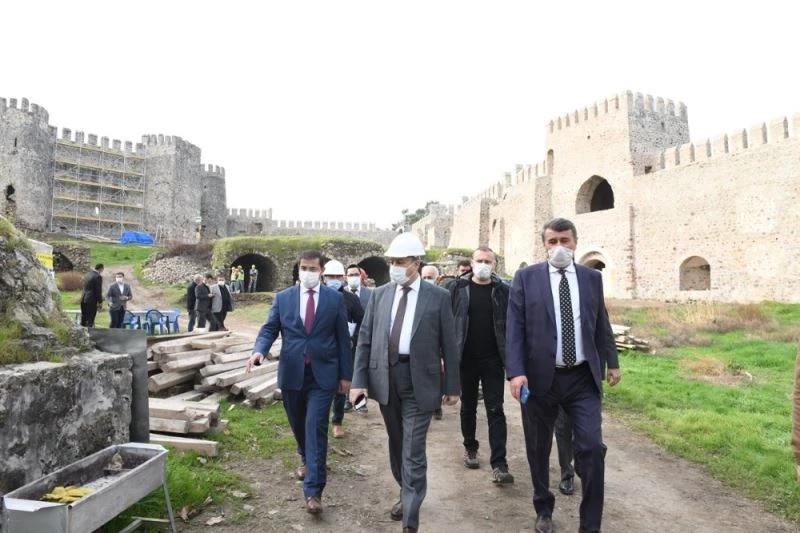 Anamur ilçe temasları kapsamında Vali Su’nun ilk durağı Mersin-Antalya Karayolunun yanında deniz kıyısında yer alan, 3. ve 4. yüzyılda Akdeniz ve Kilikya ticaret yollarını gözetlemek için Romalılar tarafından inşa edilen Mamure Kalesi oldu. Mamure Kalesi’ni gezen Vali Su, kale içerisindeki tarihi camide devam eden ve bu yıl sonuna kadar tamamlanması hedeflenen restorasyon çalışmaları hakkında Kaymakam Mehmet Nuri Başaran ve diğer yetkililerden bilgi aldı.
