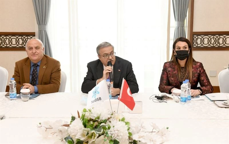 TÜİOSB’de yürütülen altyapı, inşaat çalışmaları ile fabrika inşaat projelerinin eş zamanlı olarak tamamlanması konusunda bilgilendirilme sunumlarının yapıldığı toplantıda, fabrika inşaatlarını planlarken Avrupa Yeşil Mutabakatını, çevre ve insana saygıyı esas alan, ’Endüstri 4.0’ yatırımına uygun dijital altyapı ve ’Lead Sertifikalı’ bina projeleri oluşturmalarının önemi vurgulandı.