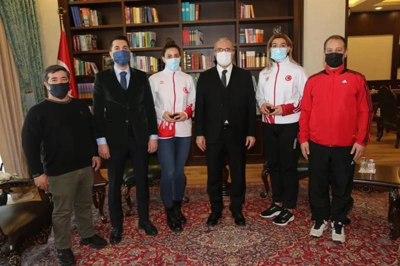 Elazığ Valisi Dr. Ömer Toraman, Kırşehir’de düzenlenen U22 Büyükler Ferdi Boks Türkiye Şampiyonası’ndan madalyayla ayrılan Elazığlı sporcular, 63 kilo Türkiye Şampiyonu Gizem Özer, 81 kilo Türkiye ikincisi Mihriban Güneri, antrenörleri Cemil Döndü ve Atalay Şenbakar’ı makamında kabul etti. Sporcuları ve antrenörlerini elde ettikleri derecelerden dolayı kutlayan Vali Toraman, başarılarının devamını diledi.