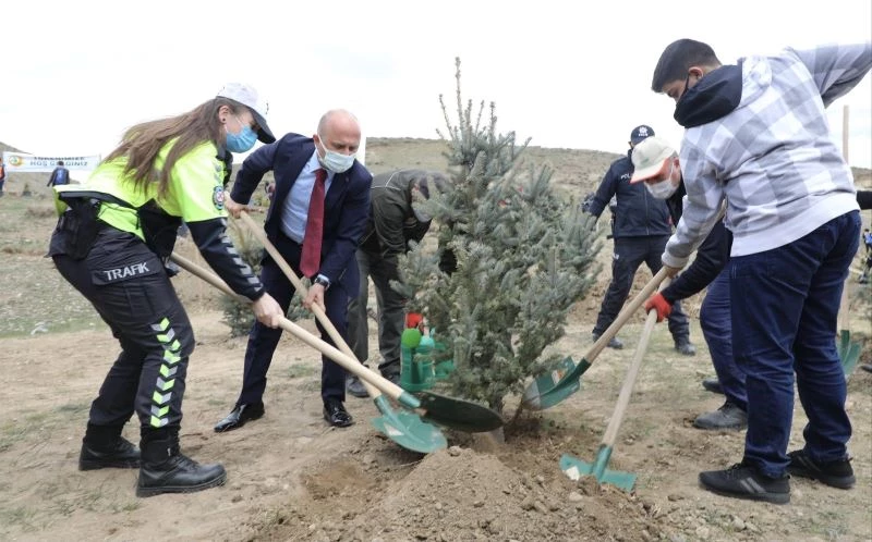 Ağrı Valisi Dr. Osman Varol, Polis Hatıra Ormanında polisler ve öğrencilerle birlikte fidan dikti.