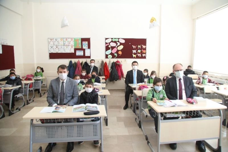Sivas Valisi Salih Ayhan ve Belediye Başkanı Hilmi Bilgin, yüz yüze eğitime başlayan okulu ziyaret ederek öğrencilerin sevincine ortak oldular.