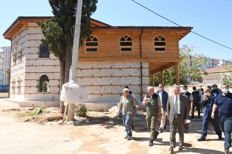 Vali Yazıcı, ilk olarak Antalya Orman Bölge Müdürlüğü bahçesinde yapımı devam eden, ahşap mimarisi ve ağaç işçiliğiyle dikkat çeken camide incelemelerde bulundu. Camide yapılan işçilik ve çalışmalar hakkında Bölge Müdürü Vedat Dikici’den bilgi aldı.