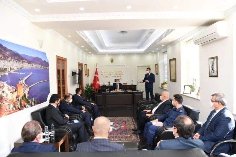 Antalya Valisi Ersin Yazıcı, Alanya Kaymakamlığı’nı ziyaret etti. Ziyaret kapsamında ilk durağı Alanya Kaymakamlığı olan Vali Yazıcı, kaymakamlıkta gerçekleştirilen ve yeni pandemi tedbirlerinin değerlendirildiği toplantıya katıldı. Toplantı sonu basın mensuplarına açıklamalarda bulunan Vali Yazıcı; “Pandemi tedbirleriyle ilgili görüşmeler gerçekleştirdik. Pandemiyle mücadelede hep birlikte başarıya ulaşabiliriz. Bu virüsten birlikte vereceğimiz mücadele ile kurtulacağız. Basit kurallarımız var. Maske – Mesafe – Temizlik. Bu kurallara uyması için tüm kurum amirlerini tekrar uyardım. Arkadaşlarımız zaten gerekli desteği sağlıyor. Bundan sonra da sağlamaya da devam edecekler. Alanya’mızın genel durumunu konuştuk. İnşallah her alanda üretilen hizmetlerin daha iyi, kaliteli olması için arkadaşlarımızdan söz almış olduk. İnşallah bir dünya markası olan Alanya’mızı büyütmeye, yüceltmeye ve tanıtmaya devam edeceğiz.” diye konuştu.