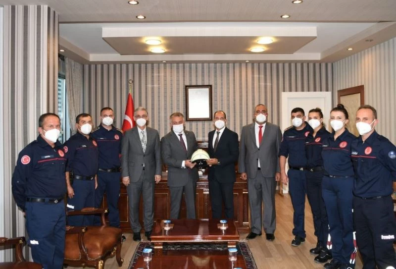 İtfaiyecilik Haftası etkinlikleri kapsamında Antalya Büyükşehir Belediyesi İtfaiye Daire Başkanı Ahmet Kısa ve itfaiyecilerden oluşan heyet, Antalya Valisi Ersin Yazıcı ile bir araya gelerek, itfaiye teşkilatı ve çalışmaları hakkında bilgi verdi. Ziyarette konuşan Vali Yazıcı; “İnsanların hem canını hem malını, gerektiği zaman ölümü göze alarak koruyan kahraman itfaiye personelimizin, İtfaiyecilik Haftasını kutluyorum” dedi.
