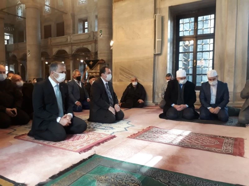 İstanbul Valisi Ali Yerlikaya, korona virüsle mücadelenin 1. yılı ve 14 Mart Tıp Bayramı dolayısıyla Eyüp Sultan Camii’nde okunan hatim duası ve Kuran-ı Kerim tilaveti programına katıldı.
