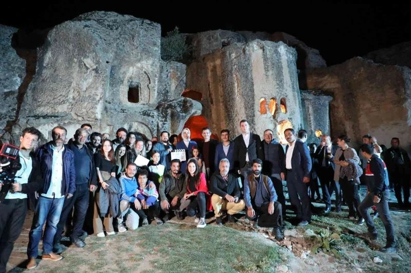 Afyonkarahisar Valisi Kübra Güran yiğitbaşı, Ayazini köyündeki mağaralarda çekimleri devam eden bir tarih filminin setini ziyaret etti.