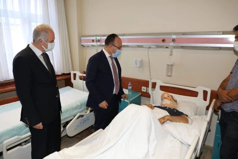 Vali Yırık, trafik kazasında yaralanan Dr. Öğr. Üyesi Dikici ile bir araya geldi