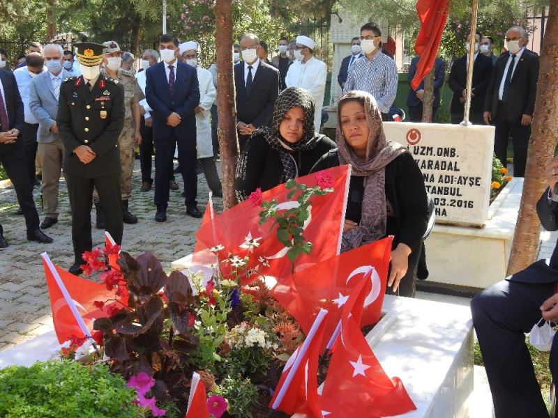 Etkinlikler kapsamında Asri Mezarlıkta bulunan şehitlikte bir araya gelen Vali Davut Gül, Garnizon Komutanı Tuğgeneral Hacı Ali Osman, Büyükşehir Belediye Başkanı Fatma Şahin, Şahinbey Belediye Başkanı Mehmet Tahmazoğlu ve Şehitkamil Belediye Başkanı Rıdvan Fadıloğlu ile şehit aileleri, okunan Kur’an-ı Kerim ve duanın ardından şehit mezarlarına karanfiller bıraktı.