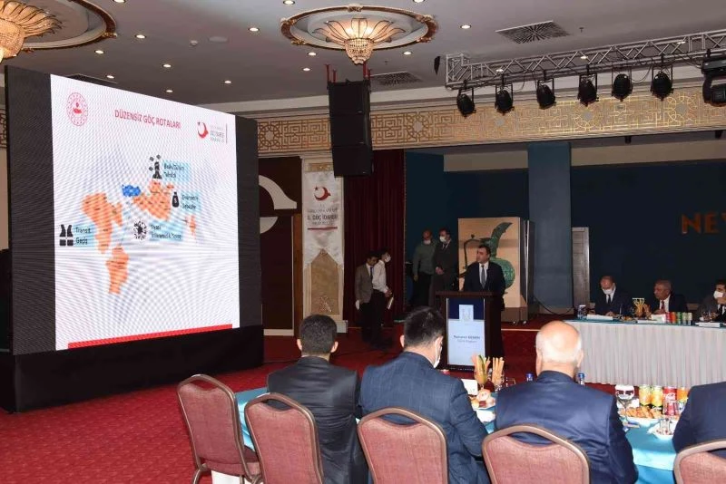 Bir otelin toplantı salonunda, Şanlıurfa Valisi Abdullah Erin’in ev sahipliğinde gerçekleştirilen toplantıya, Şanlıurfa, Malatya, Batman, Adıyaman, Diyarbakır, Elazığ, Mardin, Siirt ve Şırnak illeri valileri, emniyet müdürleri, jandarma komutanları ve göç idaresi müdürleri katıldı. Saygı duruşu ve İstiklal Marşı’nın okunmasıyla başlayan toplantının açılış konuşmasını yapan Vali Abdullah Erin, göçmen sayıları incelendiğinde 2019 yılının kritik bir yıl olduğunu, düzensiz göç sayılarının en üst seviyede 2019 yılında gerçekleştiğini belirterek, düzensiz göçle mücadele koordinasyon toplantılarının da 2019 yılında başladığını hatırlattı. Düzensiz göçle mücadelede, sınır güvenliği ve iller arası koordinasyon önemine değinen Vali Erin, yapılan toplantılarla kurumlar arası koordinasyonun sağlıklı işlemesinin temin edilerek, düzensiz göçün önüne geçilmesinin amaçlandığını ifade etti. Düzensiz göçün, Türkiye başta olmak üzere istikrar artışı içerisinde olan ülkelerde büyük bir sorun olduğunu kaydeden Vali Erin, “Türkiye’nin bulunduğu coğrafyada ekonomik ve sosyal açıdan istikrarlı bir ülke olması, komşu ülkelerdeki savaş, baskı ve ekonomik sıkıntılardan dolayı cazibe merkezi olma konumunu koruyan durumdadır. Düzensiz göç hem ulusal hem de uluslararası güvenliği ciddi şekilde etkileyen, kontrol edilmemesi durumunda ülkelerin ekonomik ve sosyal yapısına zarar veren, kamu düzenini ve asayişi bozan ciddi bir sorundur” dedi.