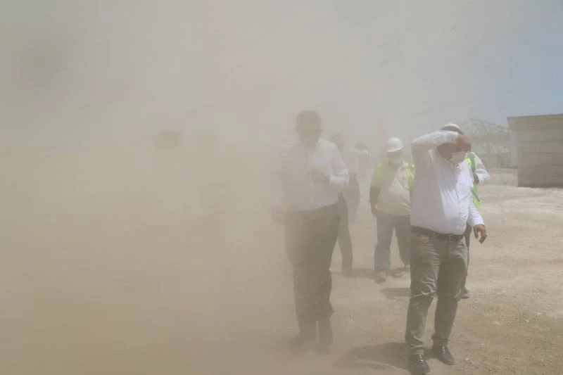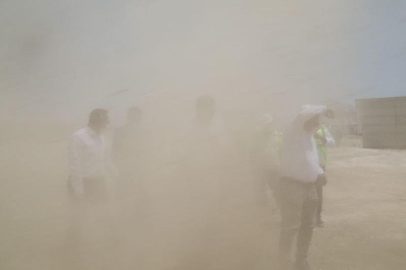 Meraküm mevkiinde yapımı devam eden Kangal Köpeği Üretim, Eğitim ve Koruma Merkezi Projesi’ni incelemek üzere bölgeye giden Vali Salih Ayhan ve beraberindekiler, çıkan hortum karşısında zor anlar yaşadı. Heyet inşaatı incelemeye başladığı sırada oluşan hortum nedeniyle göz gözü görmezken, Vali Ayhan ve beraberindekiler toz içerisinde kaldı.