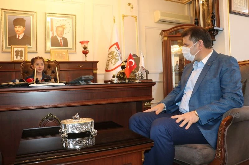 23 Nisan Ulusal Egemenlik ve Çocuk Bayramı’nda Sivas Valisi Salih Ayhan’ın koltuğunu temsili olarak devralan köy okulu öğrencisi Ceyda Öztürk’ün ilk talimatı duygulandırdı.